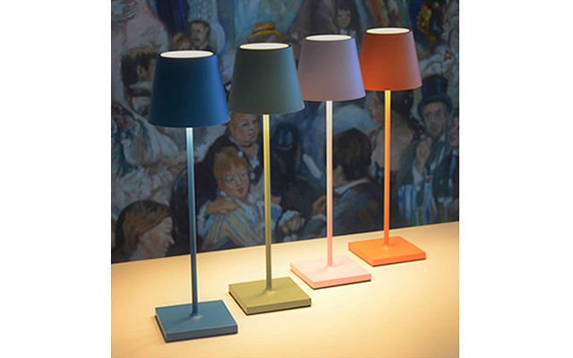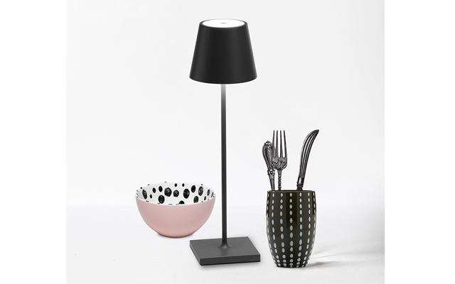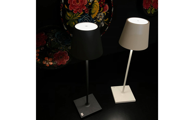Poldina pro è una lampada a batteria portatile e ricaricabile da tavolo. È dotata di: base di ricarica a contatto e touch dimmer.