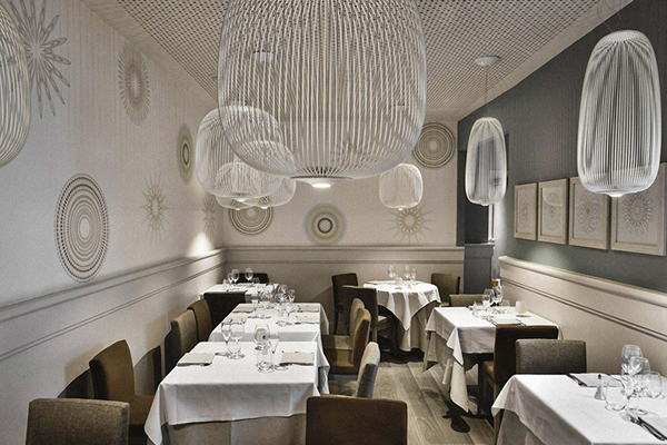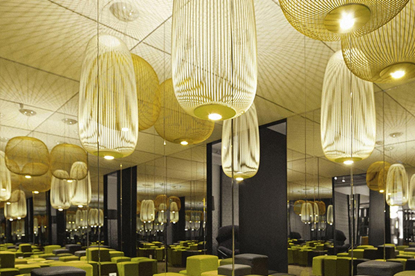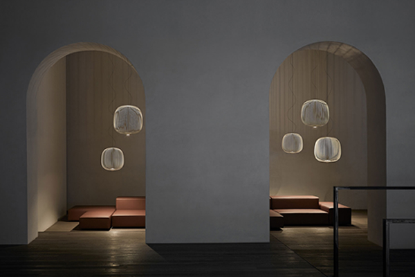 “Spokes esprime una sensazione di leggerezza e movimento. Come attraverso un magico e geometrico reticolo, la luce filtra dall’interno, proiettando un caleidoscopio di vuoti e di pieni.