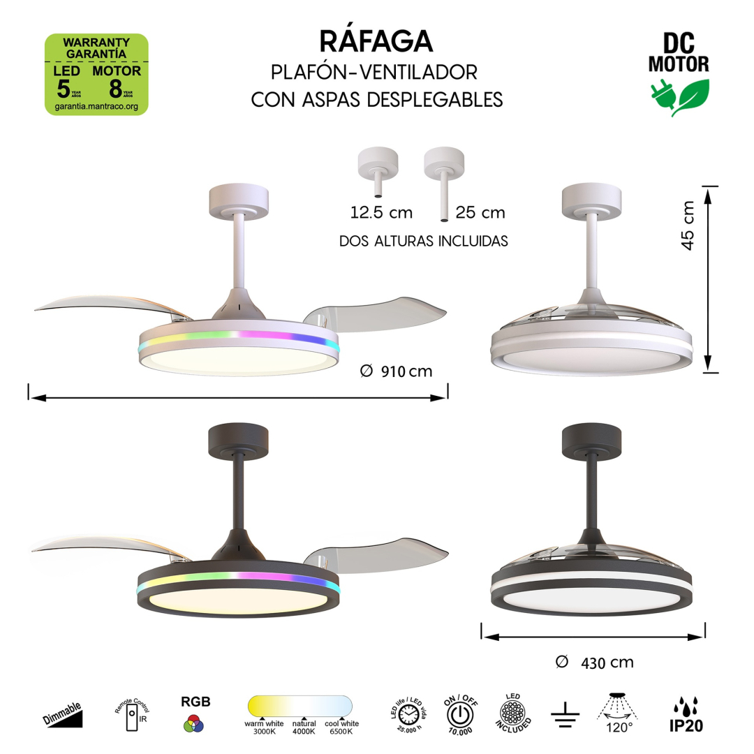Questo ventilatore da soffitto ha integrato un sottile corpo luce led perfetto per illuminare in modo diffuso la propria stanza senza rinunciare alle potenzialità del ventilatore adatto per ambienti fino ai 13mq.