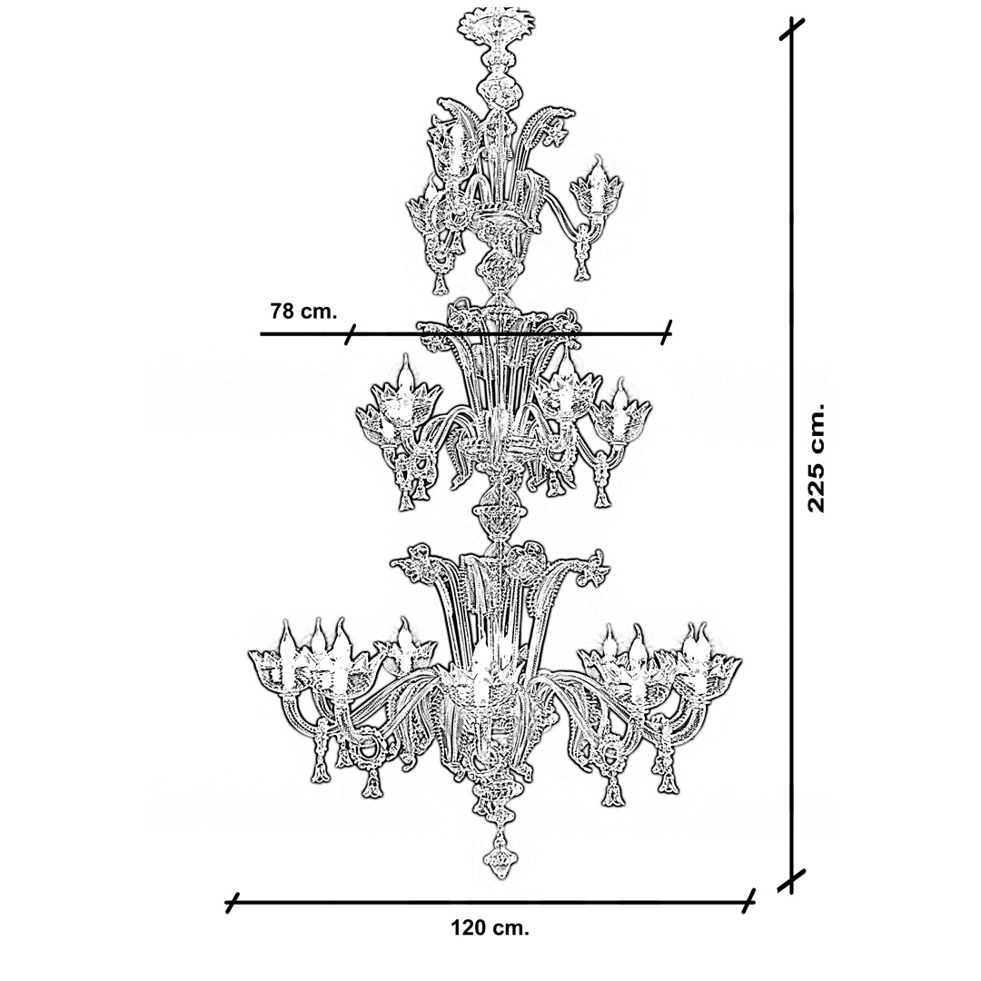 Lampadario vetro Murano tutto cristallo a 3 piani.