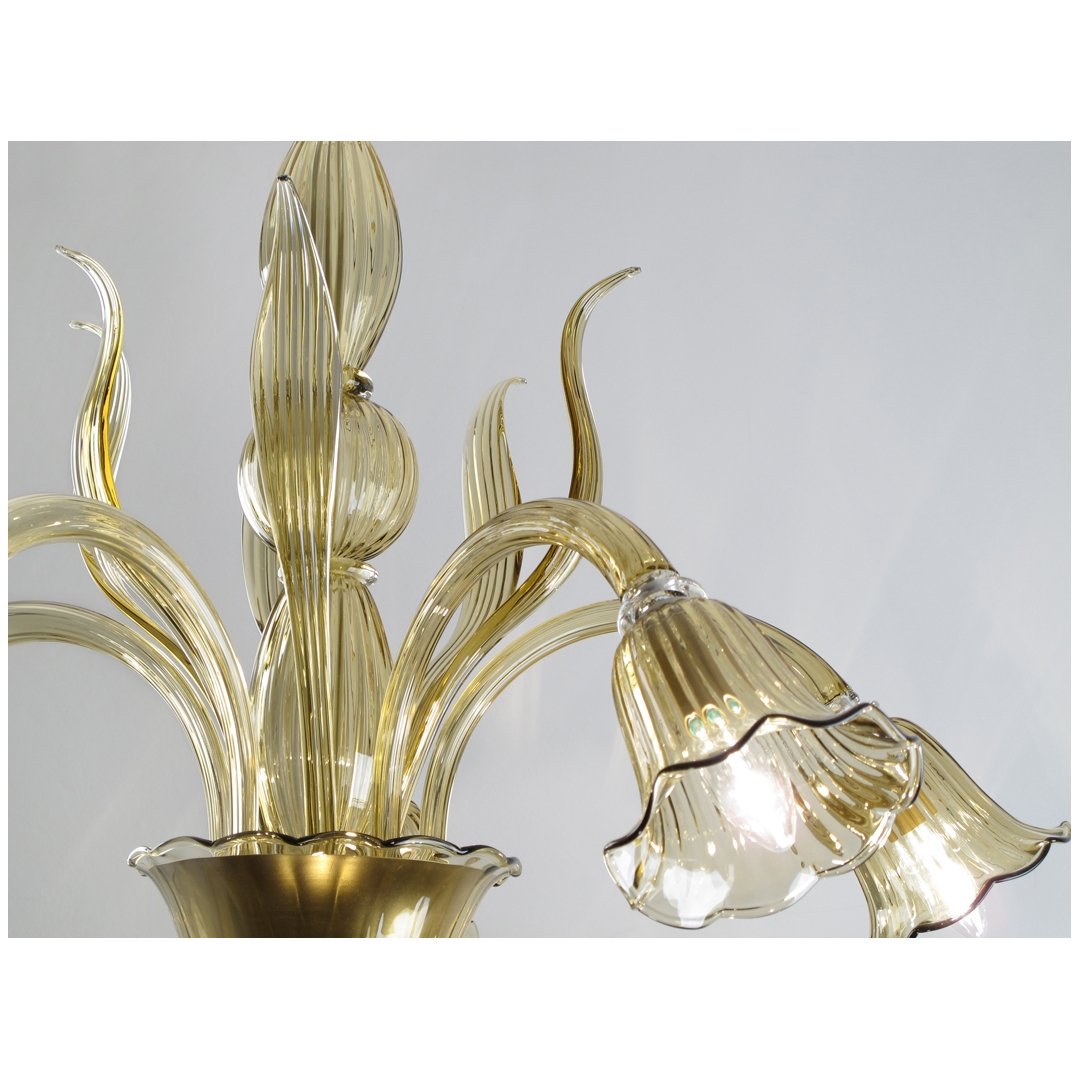 Lampadario vetro Murano a 5 luci in giù color pagliesco.