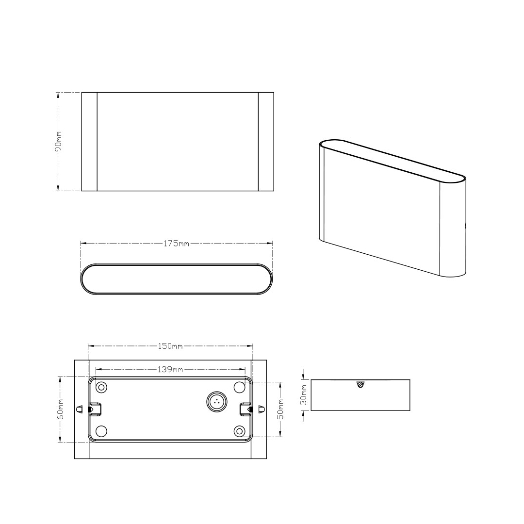Lampada da parete per esterno a LED, in pressofusione di alluminio. Emissione di luce sopra e sotto. Disponibile nelle finiture:Bianco opaco e Antracite. IP54.