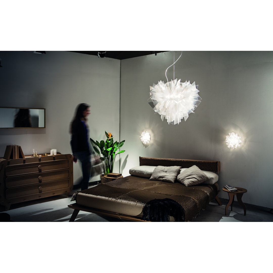 Slamp realizza le proprie lampade in Italia con materiali sintetici riciclabili brevettati, antistatici e di lunga durata. Ciascun pezzo viene composto e finito manualmente.
