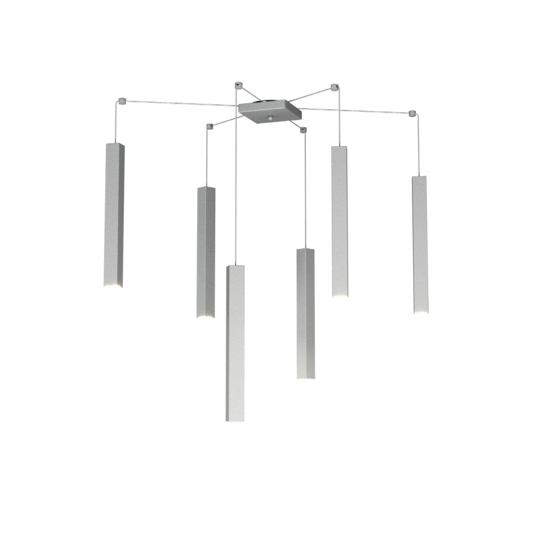 Collezione di lampade a sospensione realizzata con tubolari metallici ultrasottili aventi sezione quadrata e verniciati in varie finiture: Bianco, Grigio, Sabbia, Grigio Antracite, Marrone e Nero.
