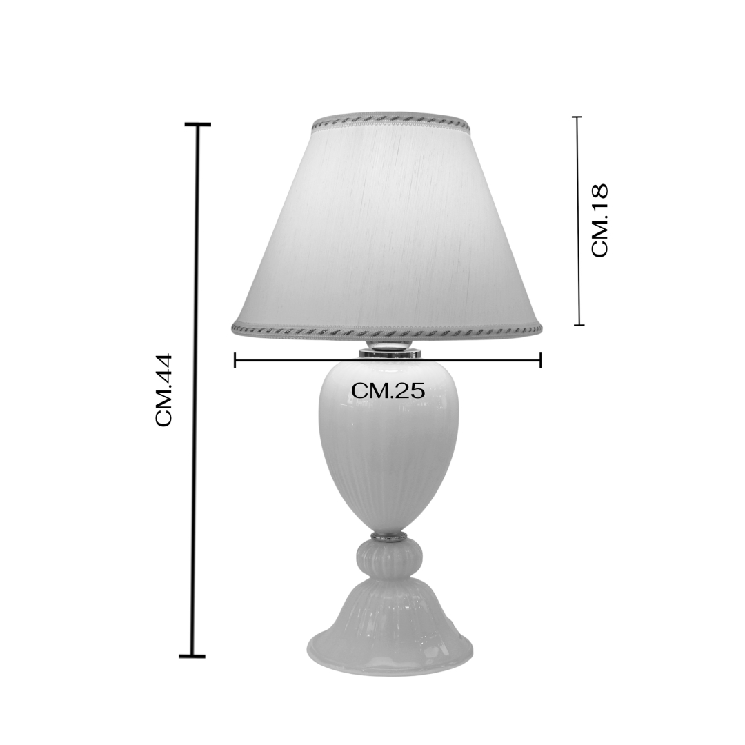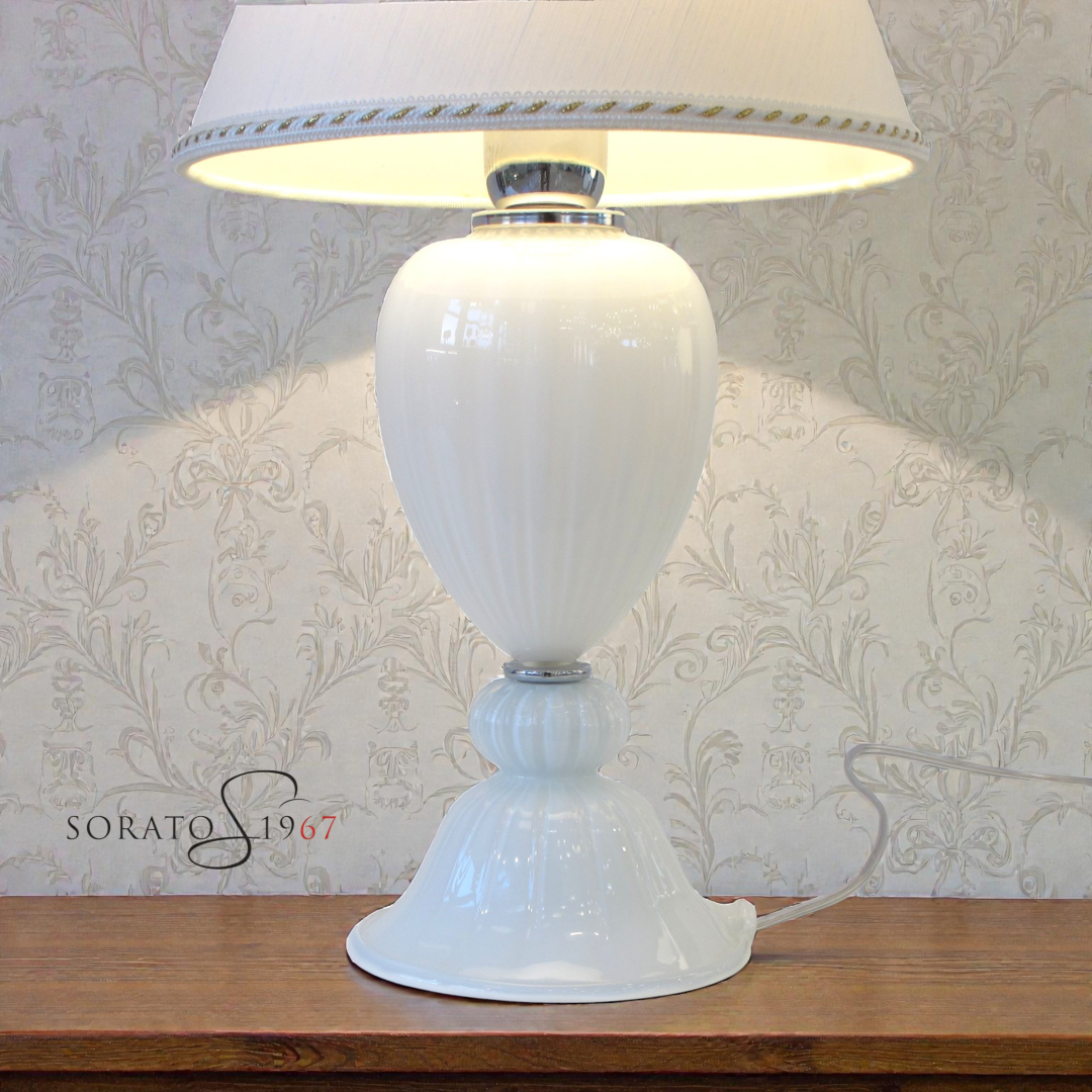 Lampada da tavolo vetro Murano in vetro bianco a coste.