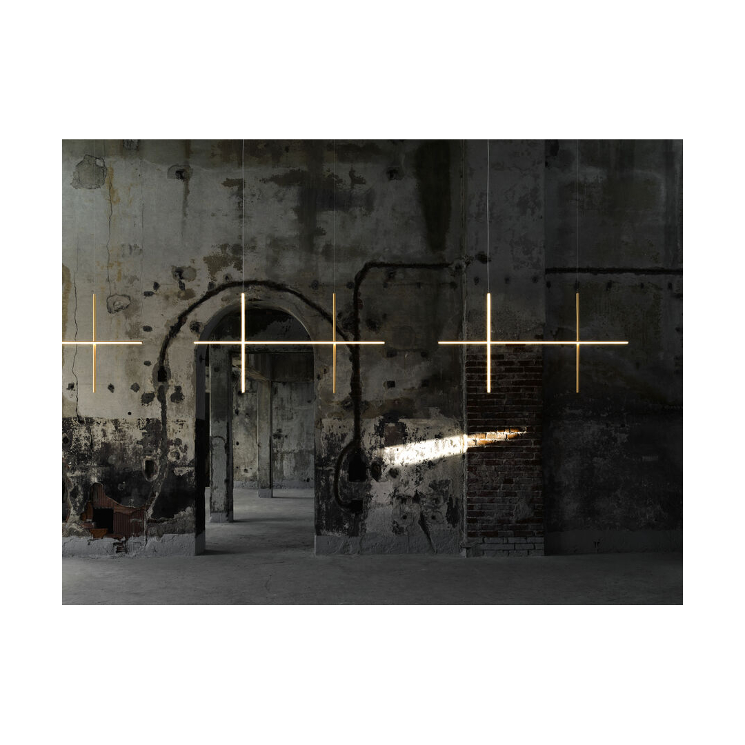 "Coordinates è un sistema di illuminazione a luce diffusa composto da aste orizzontali e verticali disposte a formare griglie luminose di varia forma e complessità. Ogni asta è composta da un corpo in alluminio estruso lavorato e anodizzato in colorazione champagne e da un diffusore in silicone ottico platinico, stripled integrato (CRI 95). Ogni asta è alimentata e sostenuta grazie ad un sistema di connessione elettrica e meccanica, che rimane invisibile, studiato appositamente per consentire la composizione dei 4 modelli a sospensione (S1, S2, S3, S4) con cavi lunghi 2,4mt. E’ disponibile anche il modello “Module S”, la cui geometria è stata studiata per poter essere ripetuta più volte a creare grandi griglie per installazioni a progetto. Ciascuna configurazione Coordinates include il proprio rosone, la cui elettronica integrata consente l’utilizzo di diversi sistemi di dimerizzazione: push, 1-10, DALI. Nel caso di assenza di questi sistemi si può settare il flusso luminoso in fase di installazione, con sistema push incluso nel rosone. Per ciascuna configurazione è disponibile anche la relativa versione Cl III per installazioni con power supply remoto."
