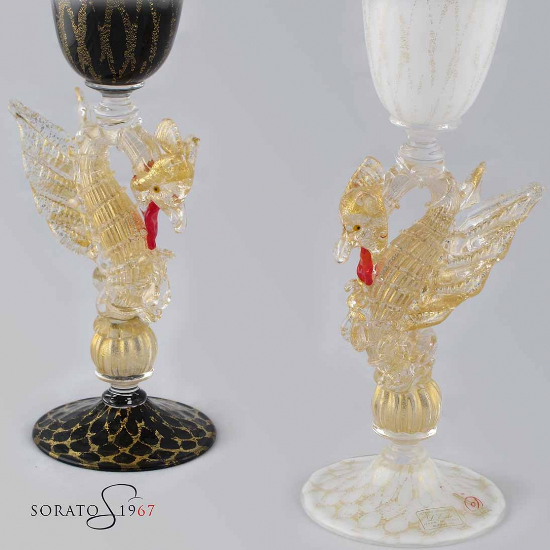 Bicchiere da collezione originale muranese, lavorato completamente a mano, garantito dal bollino "Promovetro - Consorzio del vetro artistico di Murano". Può presentare leggere difformità di colore rispetto alla foto, data l'unicità di ciascun pezzo.