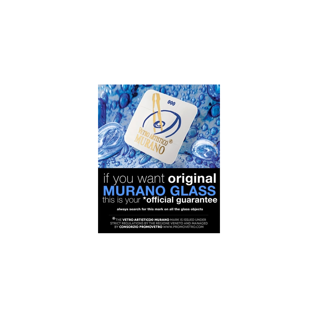 Bicchiere da collezione originale muranese, lavorato completamente a mano, garantito dal bollino "Promovetro - Consorzio del vetro artistico di Murano". Può presentare leggere difformità di colore rispetto alla foto, data l'unicità di ciascun pezzo.