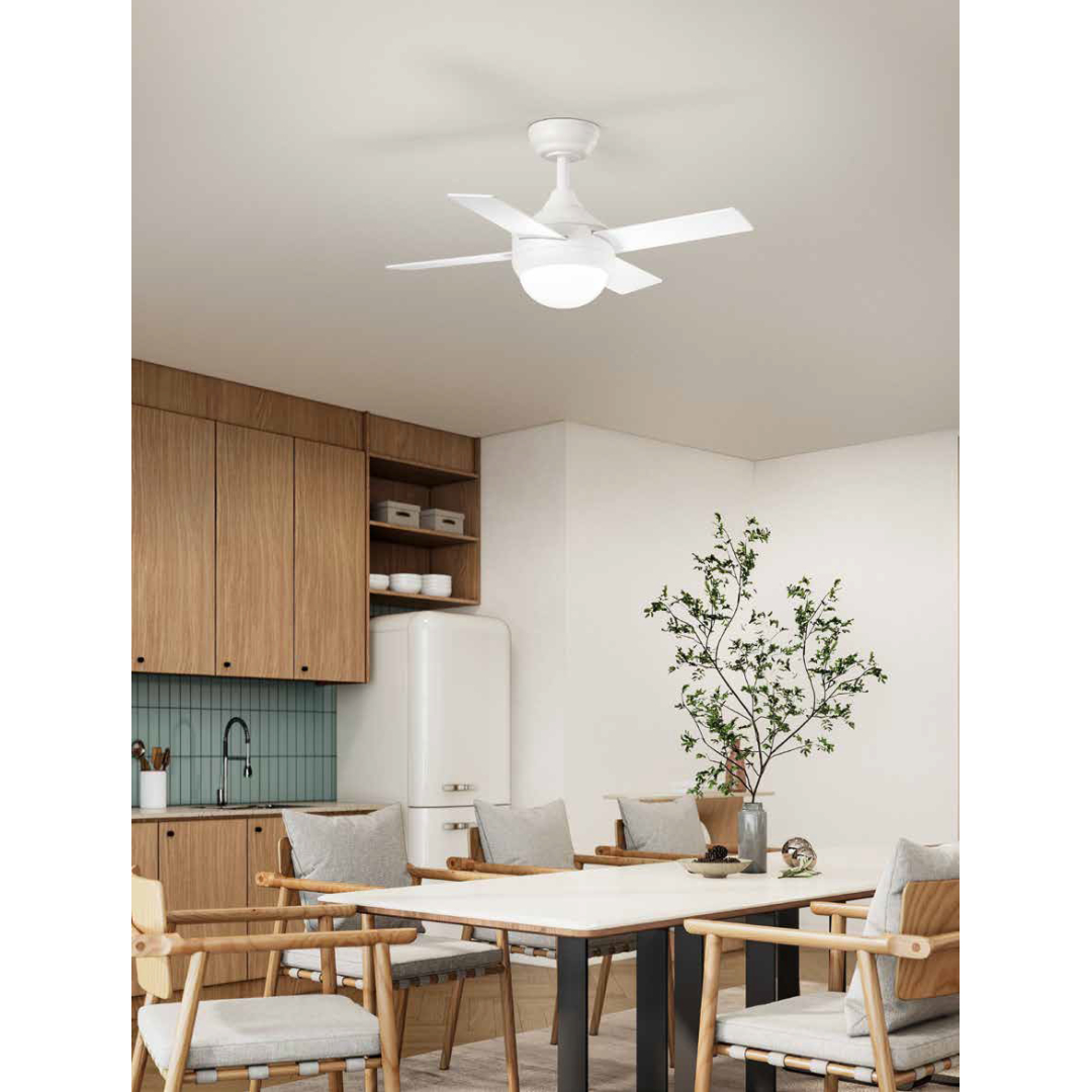 Ventilatore con struttura in metallo verniciato polvere. 4 pale in legno verniciato. Diusore in acrilico satinato.