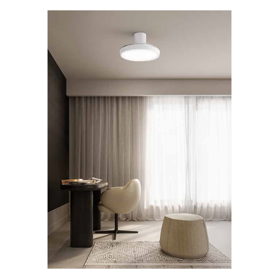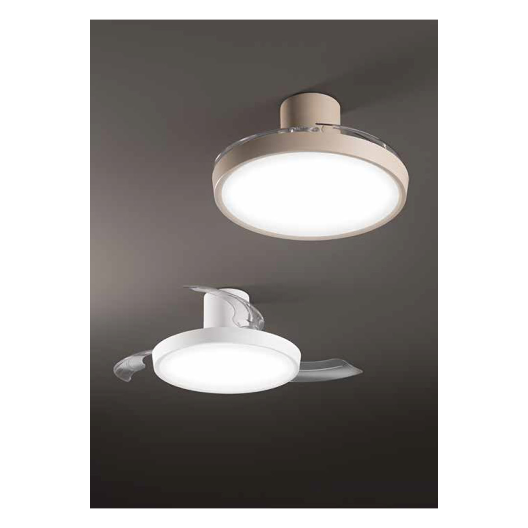 Ventilatore con struttura in metallo verniciato a polvere con 3 pale a scomparsa in acrilico. Diffusore in acrilico satinato. Adatto ad ambienti mq: 13-20